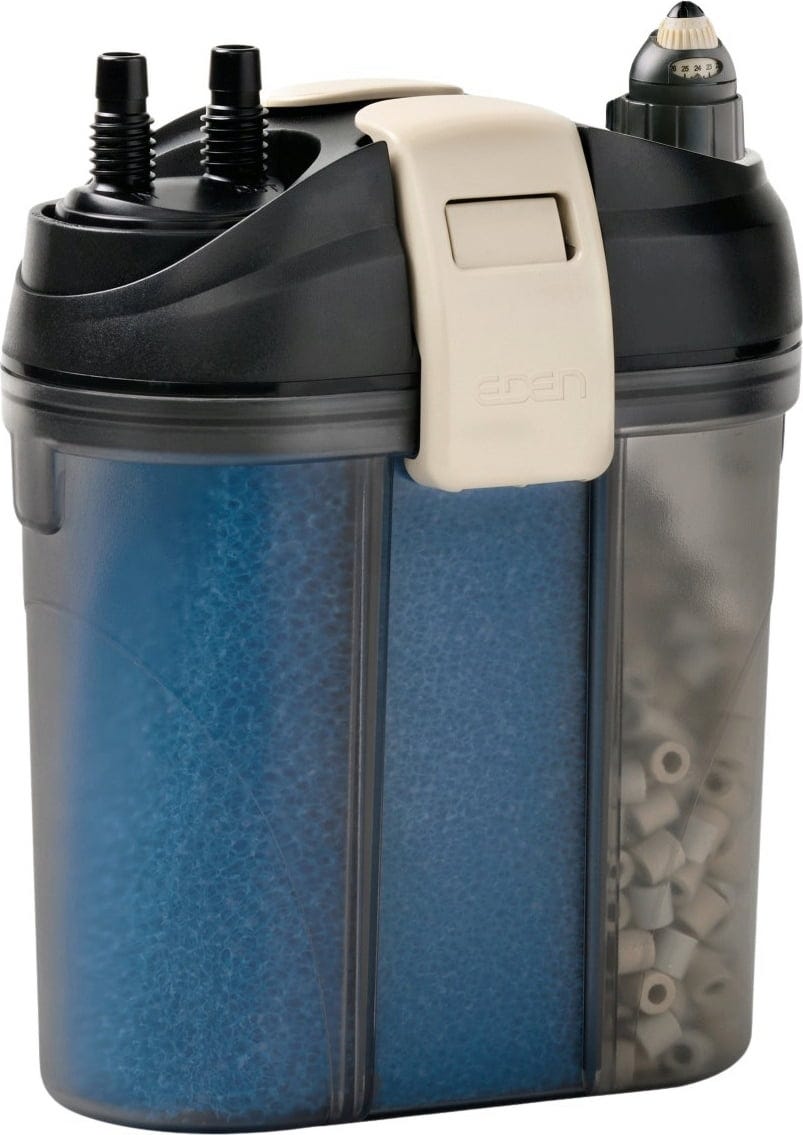 Suchst du nach einer leistungsstarken Filterlösung für dein Aquarium, die wenig Platz beansprucht? Der Außenfilter FET von Eden ist die ideale Wahl, um dein Wasser professionell zu reinigen, ohne dass du dafür auf wertvollen Platz in deinem Unterschrank verzichten musst.