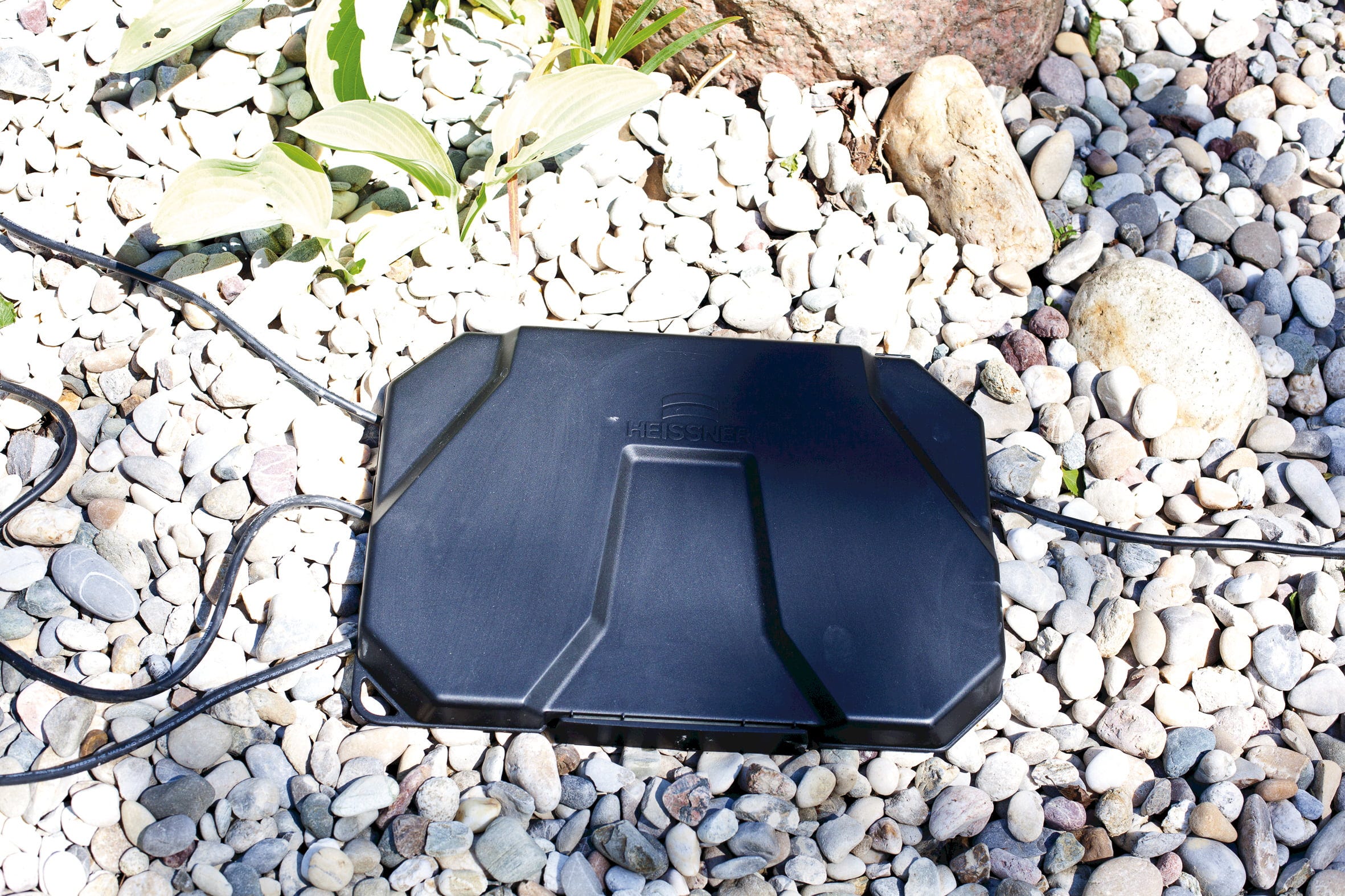 Die HEISSNER Garten-Kabelbox dient als zentrale, wetterfeste Station für die saubere und organisierte Unterbringung von Steckerleisten, Zeitschaltuhren oder Funkempfängern im Außenbereich. Die nach IP64 spritzwassergeschützte Box verfügt über spezielle Dichtungen an den Kabeldurchführungen und schützt die empfindliche Elektronik zuverlässig vor Feuchtigkeit und Verschmutzung. Das robuste Gehäuse lässt sich kindersicher verriegeln und für eine unauffällige Gartenoptik nahezu vollständig im Erdreich versenken.