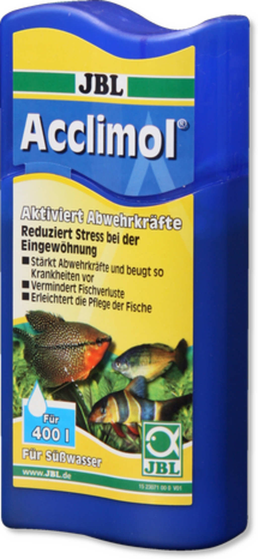 JBL Acclimol ist ein Wasseraufbereiter zur Eingewöhnung von Fischen im Süßwasser-Aquarium. Diese sollten sich im Aquarium nach Möglichkeit so wohl fühlen wie in der Natur. JBL Acclimol aktiviert die Abwehrkräfte und schützt so aktiv vor Stress. Bei Neueinrichtung, Teilwasserwechseln, dem Einsetzen neuer Fische oder nach Arbeiten im Aquarium sollte das Aquarienwasser wieder fischgerecht aufbereitet werden.