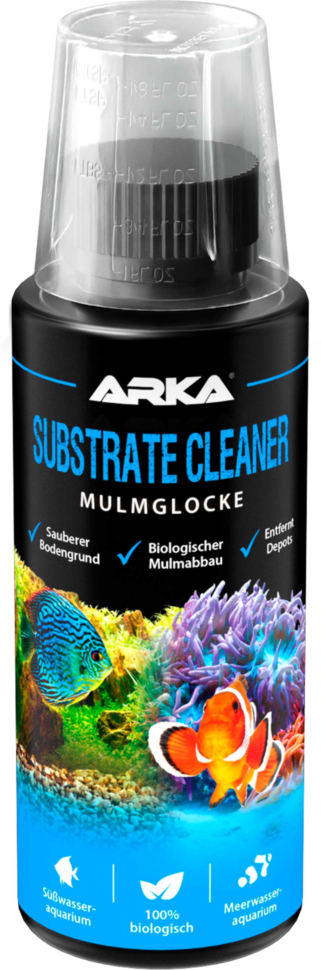 - Bei sichtbarer Verschmutzung: Alle zwei Wochen, 20 ml auf je 100 Liter Wasser hinzufügen, bis der Bodengrund wieder sauber ist.