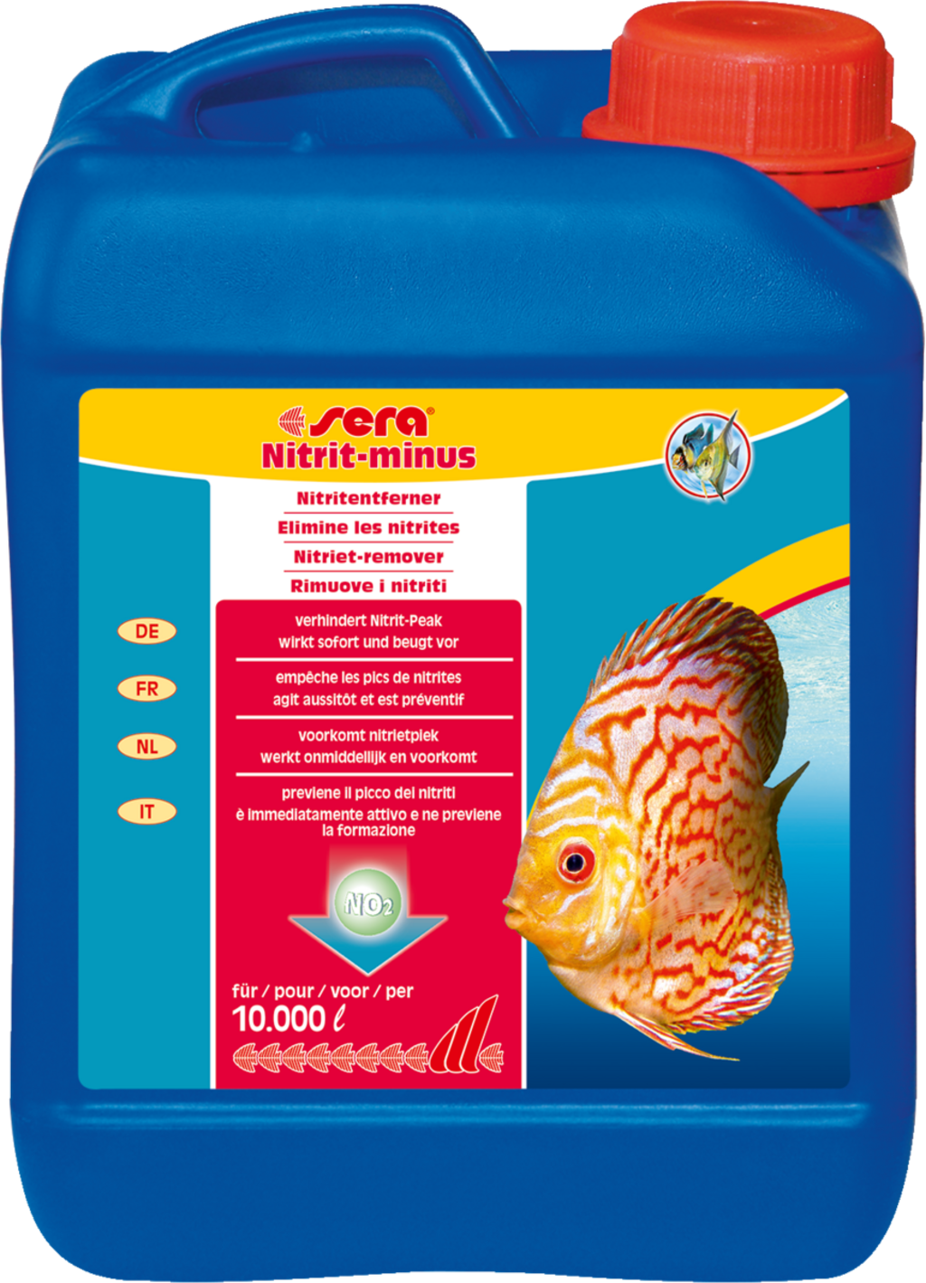 Während der Einfahrphase eines neuen Aquariums oder einem Filterwechsel kann es zu hohen Nitrit Belastungen kommen. Zu wenige Filterbakterien sind vorhanden um das giftige Nitrit zum Pflanzennährstoff Nitrat abzubauen. Bereits ein Nitritwert von 1,0 mg/l kann dabei für Zierfsiche schädlich sein. sera Nitrit-minus leistet schnelle Hilfe bei akuter Belastung und entfernt sofort bis zu 1,5 mg/l Nitrit pro Dosierung. Dabei wandelt es das Nitrit in organische Amine um, die von den Filterbakterien verwertet werden. sera Nitrit-minus ist für Zierfische, Wirbellose und Pflanzen sehr gut verträglich und kann bis zu 5-fach dosiert werden.