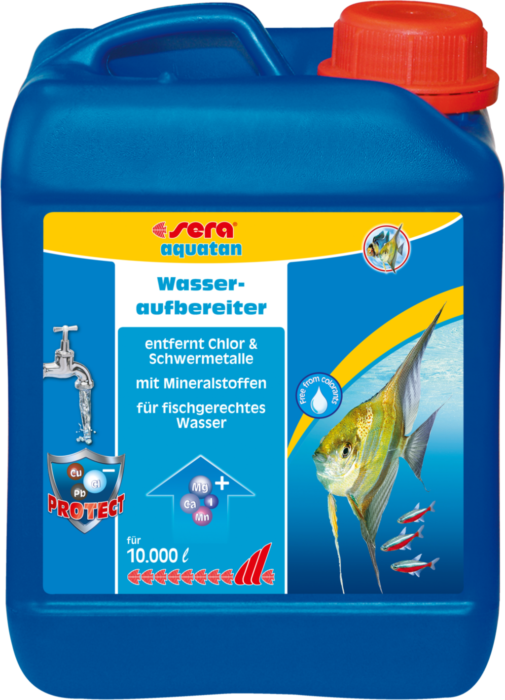 Sera aquatan ist ein Wasseraufbereiter für fischgerechtes, mineralstoffreiches Wasser. Bei jedem Wasserwechsel ist es möglich, dass toxische Schadstoffe wie Chlor oder Schwermetalle ins Aquarienwasser gelangen. Selbst in unserem gut überwachten Trinkwasser sind solche Substanzen häufig in für Fische und andere Aquarienbewohner kritischen Konzentrationen enthalten. Sera aquatan bereitet Leitungswasser sofort zu fischgerechtem und gesundem Wasser auf, indem es Schadstoffe wie Chlor und Chloramine beseitigt und Schwermetalle wie Kupfer, Zink oder Blei bindet und zudem vor Ammoniak schützt. Gleichzeitig fügt es dem Wasser wichtige Mineralstoffe in bioverfügbarer Form zu, von denen Fische, Wirbellose, Pflanzen und nützliche Mikroorganismen profitieren: