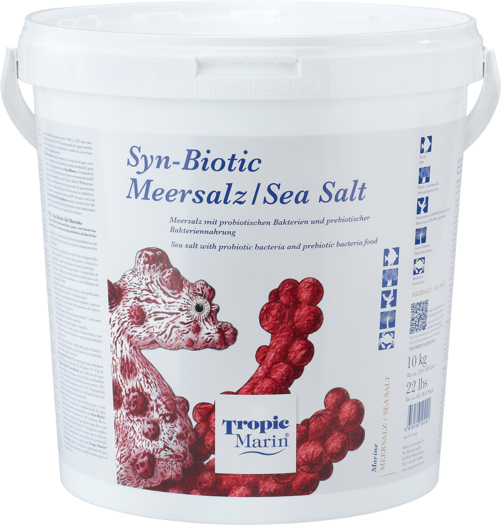 Tropic Marin SYN-BIOTIC ist ein pharmazeutisch reines Meersalz, das alle Haupt- und Spurenelemente enthält, welche im tropischen Meerwasser vorkommen. Alle von den 70 Spurenelementen werden optimal gelöst und durch enthaltene bioaktive Substanzen stabilisiert.