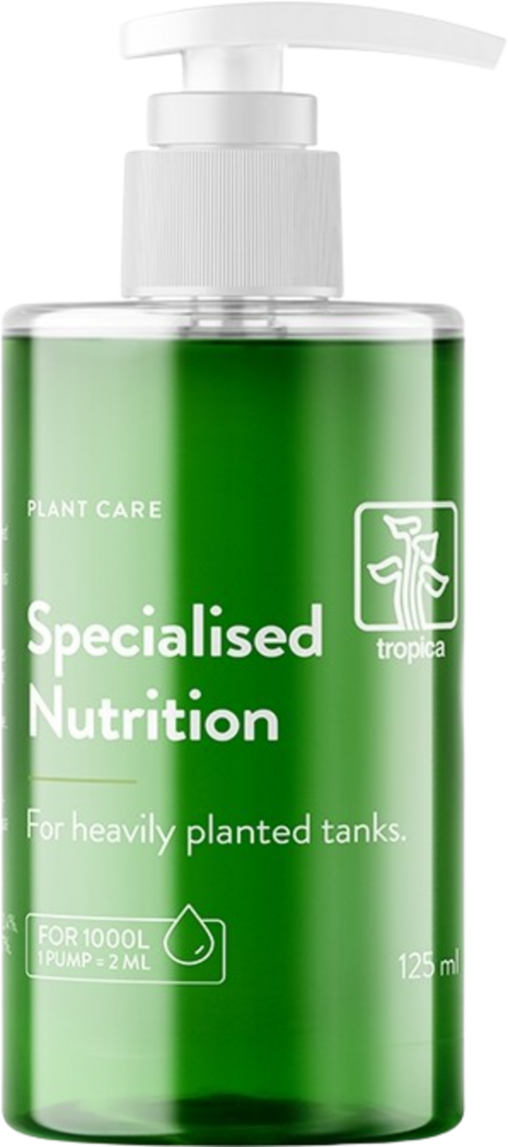 Tropica Specialised Nutrition enthält Stickstoff und Phosphor für schnell wachsende Pflanzen mit hohem Nährstoffbedarf. Außerdem Eisen, Mangan und wichtige Mikronährstoffe.